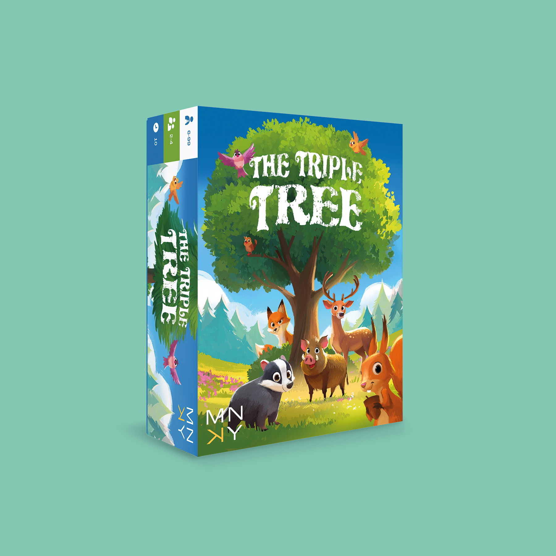 The forest is full of secrets! In this strategic game, your goal is to get three of your trees in a row. But beware: the playing field is already full – you just can’t see where everything is... Helpful forest animals may guide you, but watch out for the sly fox. Can you cleverly unravel the playing field and be the first to claim victory?
