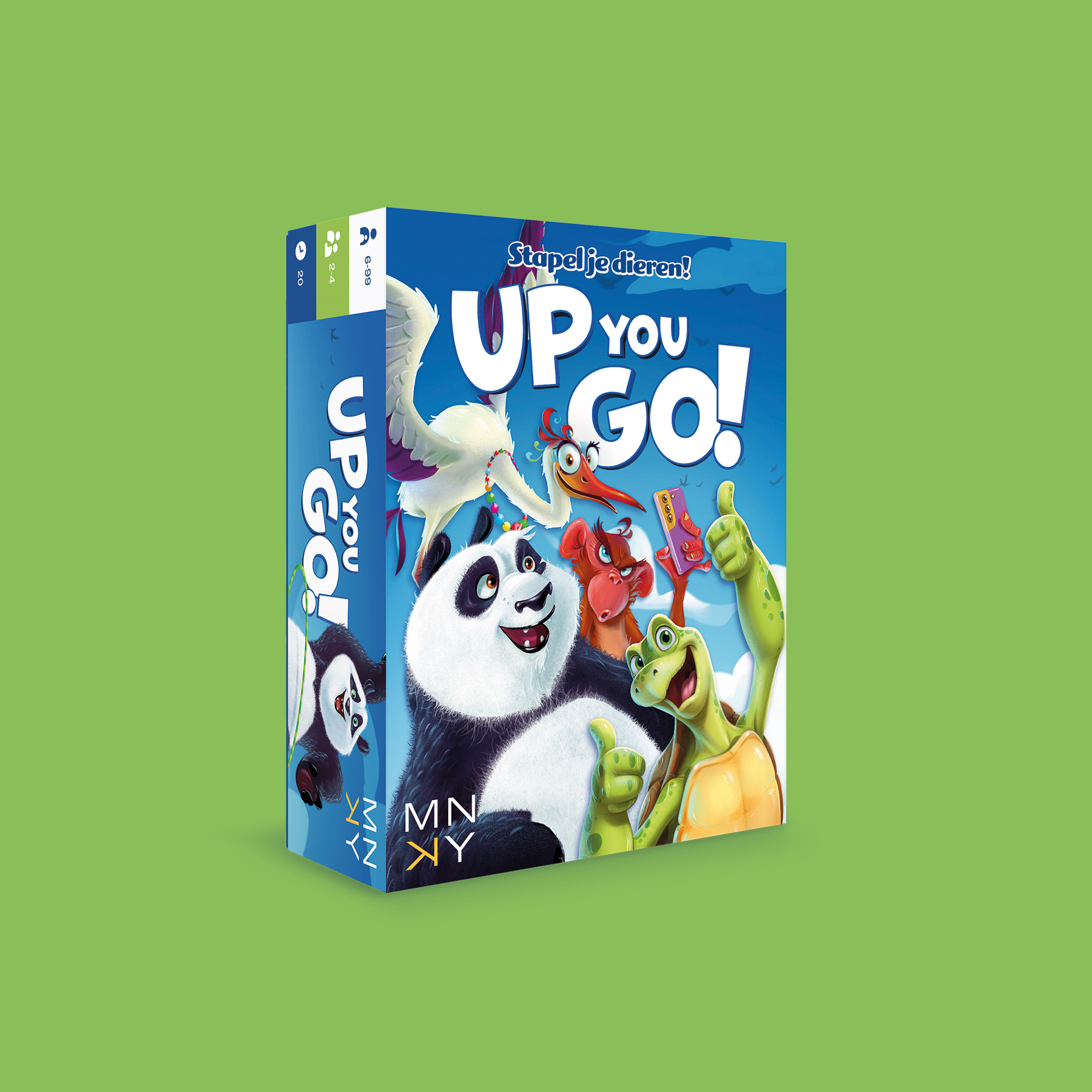 Doe mee aan de jaarlijkse acrobatiekwedstrijd van het dierenrijk, waarin kraanvogels, apen, panda’s en schildpadden het tegen elkaar opnemen om de hoogste toren te bouwen. Steun stiekem jouw gekozen team(s), help hun toren omhoog en vertraag slim de andere teams. Steun het team dat als eerste zijn toren voltooit en win zelf het spel Up You Go!